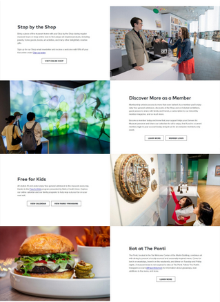 De combinatie van moderne typografie met een heldere, klassieke lay-out zorgt voor een perfecte mix die past bij zowel hedendaagse als klassieke collecties. De focus ligt op het verkopen van tickets, ondersteund door dynamische visuals en interactieve elementen die bezoekers betrekken bij het museum.